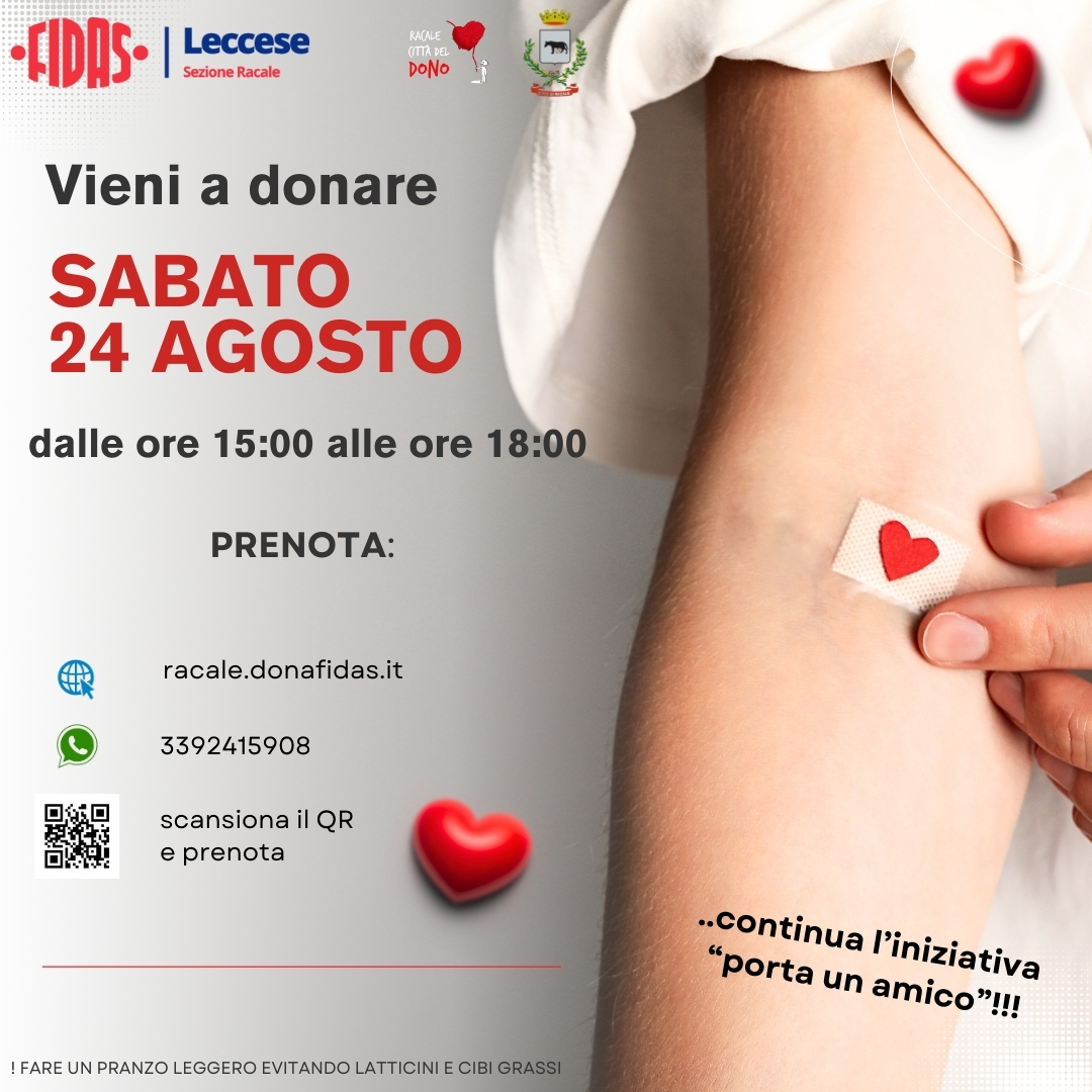 Categorie Donazioni Donazione 24 Agosto Autore articolo Di FIDAS Racale Data dell'articolo 17 Agosto 2024 Si dona il sangue Sabato 24 Agosto dalle ore 15.00 alle ore 18.00 presso la nostra sede Leggi... "Donazione 24 Agosto"