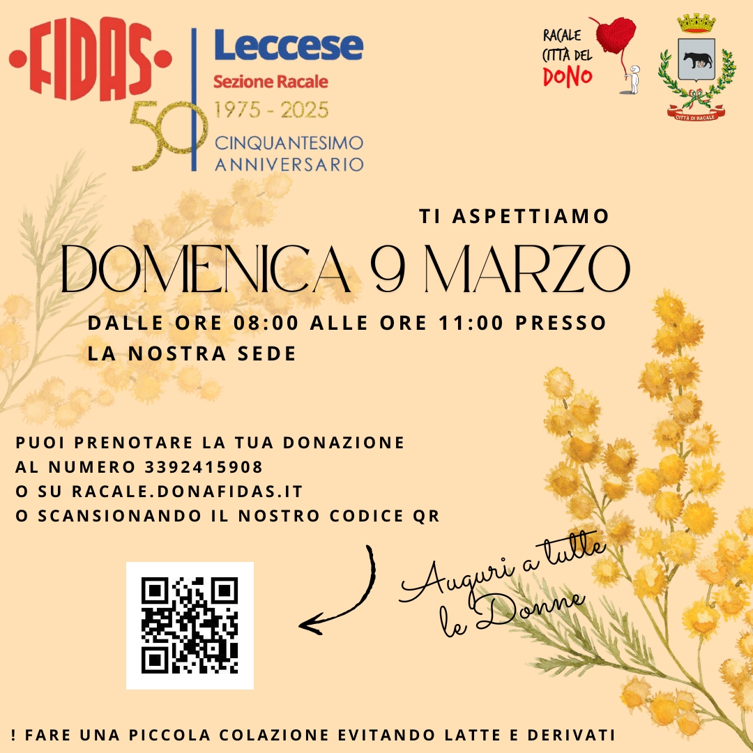Categorie Donazioni Donazione 9 Marzo Autore articolo Di FIDAS Racale Data dell'articolo 26 Febbraio 2025 Si dona il sangue Domenica 9 Marzo dalle ore 08:00 alle ore 11:00 presso la nostra sede Leggi... "Donazione 9 Marzo"