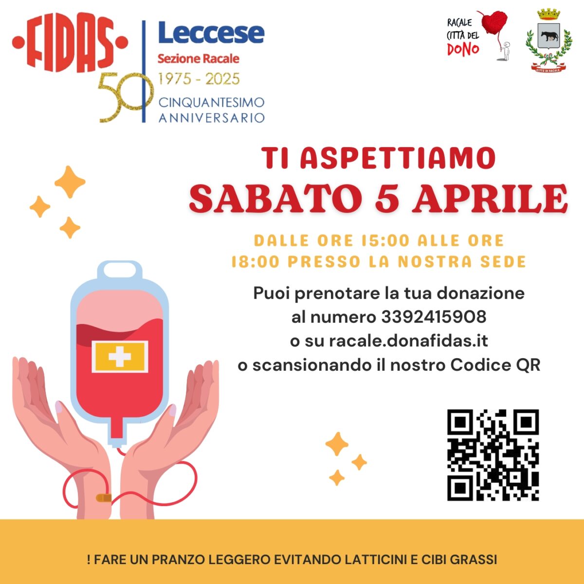 Categorie Donazioni Donazione 5 Aprile Autore articolo Di FIDAS Racale Data dell'articolo 28 Marzo 2025 Si dona il sangue Sabato 5 Aprile dalle ore 15:00 alle ore 18:00 presso la nostra sede Leggi... "Donazione 5 Aprile"