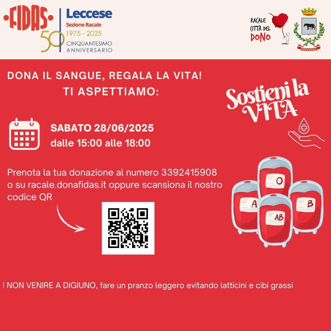 Categorie Donazioni Donazione 28 Giugno Autore articolo Di FIDAS Racale Data dell'articolo 18 Giugno 2025 Si dona il sangue Sabato 28 Giugno dalle ore 15:00 alle ore 18:00 presso la nostra sede Leggi... "Donazione 28 Giugno"
