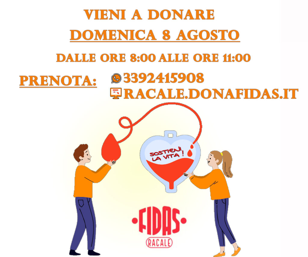 FIDAS Racale ti invita a donare sangue presso la propria sede, sita in Via A. Vespucci, n.3.