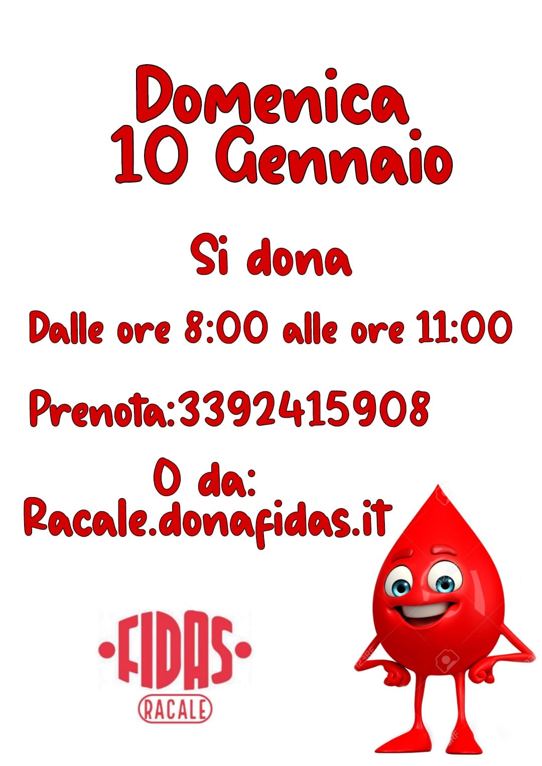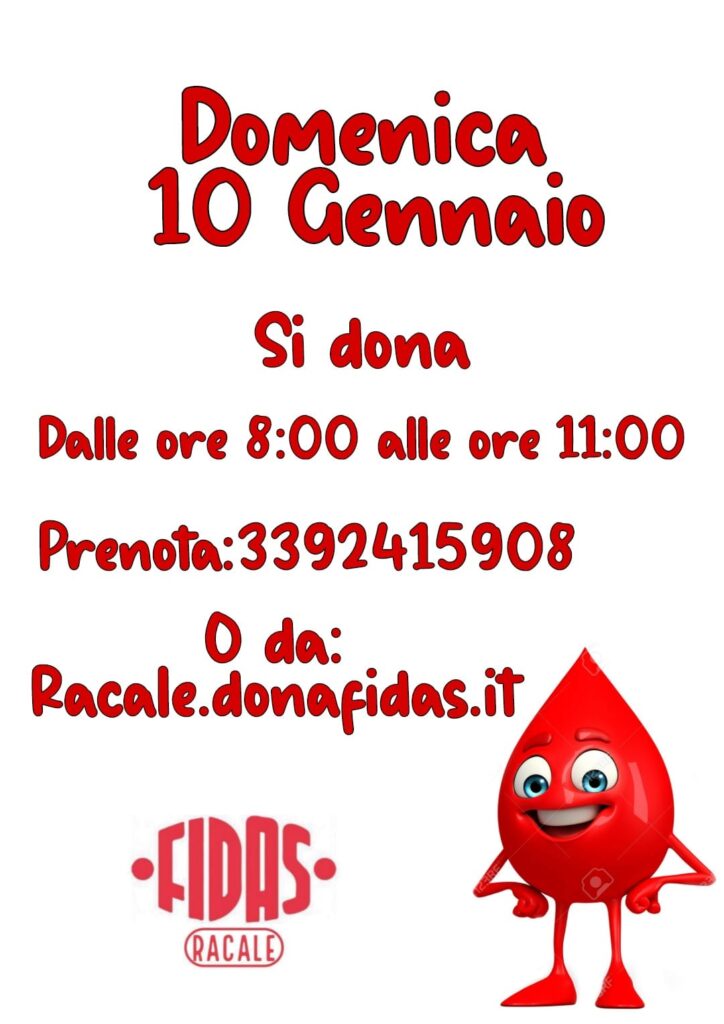 Si dona il sangue domenica 10 gennaio dalle ore 8.00 alle ore 11.00 presso la nostra Sede
