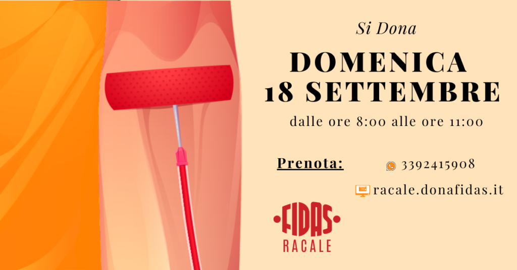 FIDAS Racale ti invita a donare sangue presso la propria sede, sita in Via A. Vespucci, n.3.