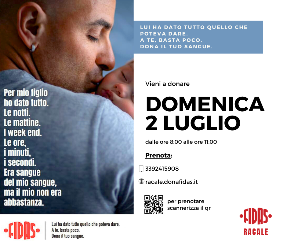 FIDAS Racale ti invita a donare sangue presso la propria sede, sita in Via A. Vespucci, n.3.
