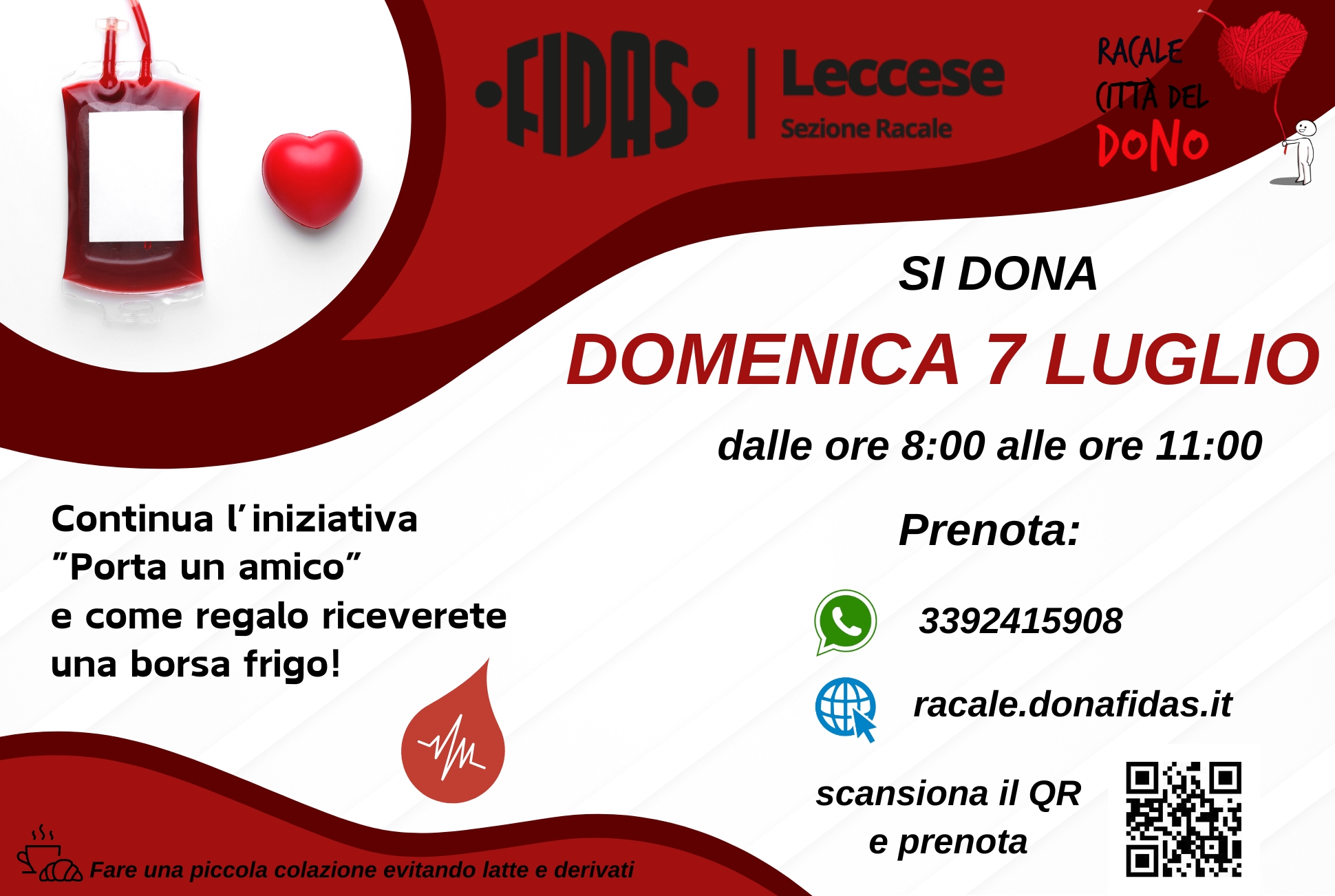 FIDAS Racale ti invita a donare sangue presso la propria sede, sita in Via A. Vespucci, n.3.