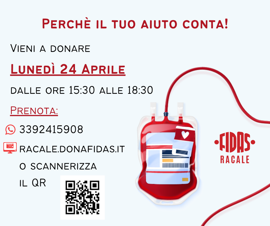 FIDAS Racale ti invita a donare sangue presso la propria sede, sita in Via A. Vespucci, n.3.